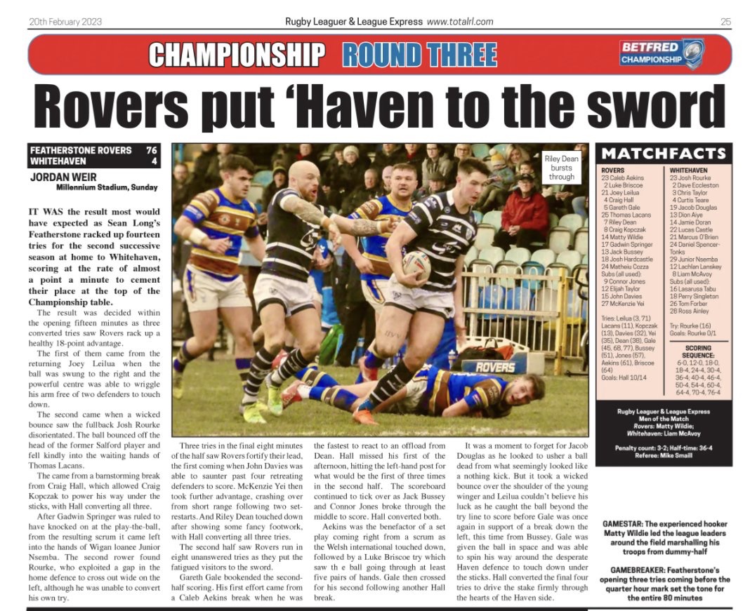 I’ve previously written for the now defunct League Weekly publication as well as Nothingbutleague.com, The Whitehaven Guide and provided match reports for Yorkshire Post and Rochdale Observer.